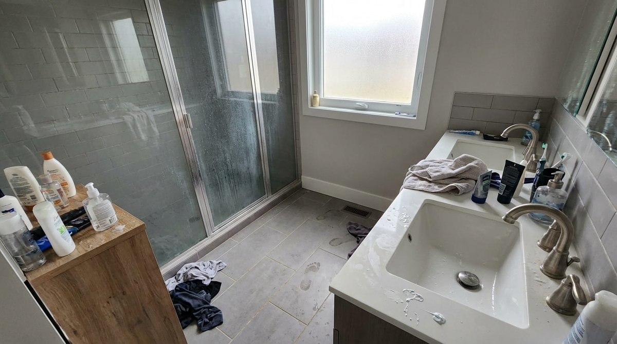 • Очищаем полки, зеркала и плитку.